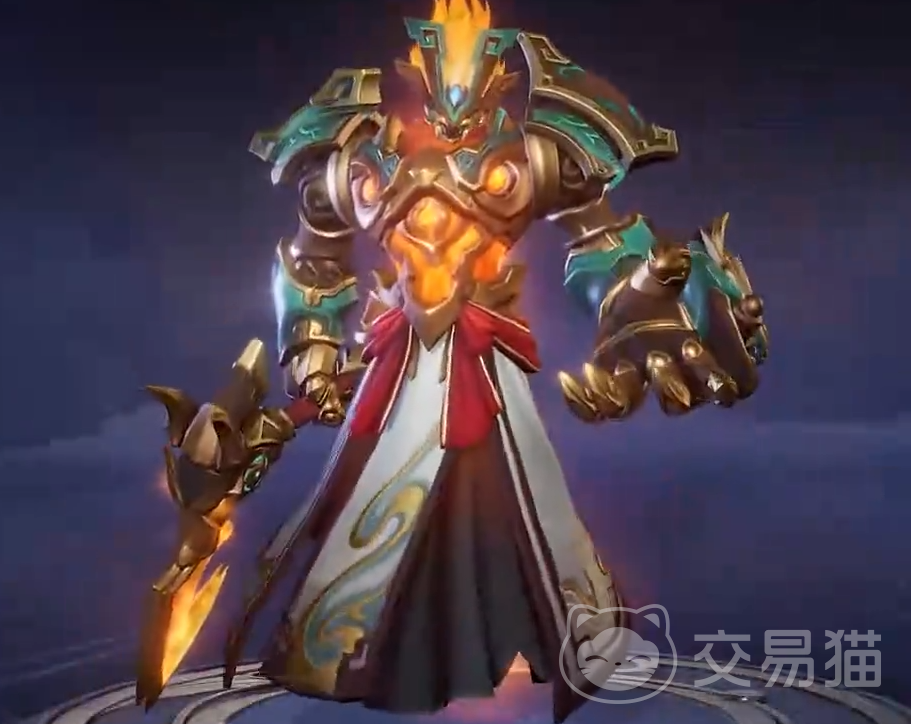 除了配饰设计以外,皮肤的颜色设计也有着独到之处,整体以翡翠幽青色为主,使用了火焰能量的明黄色点缀,铠甲以乌木色为基,辅哑光金色,这也使得钟馗的整体形象更加的威严。
