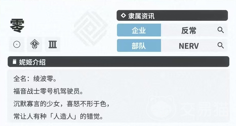 在游戏中,零这名角色的全名是凌波零,它是福音战士零号机驾驶员,也是一个沉默寡言的少女,喜怒不形于色,有一种人造人的错觉,今天小编来介绍一下胜利女神新的希望零怎么玩。该角色是属于反常企业nerv部队,也是游戏中的ssr角色,所以对他的技能也有必要了解清楚。