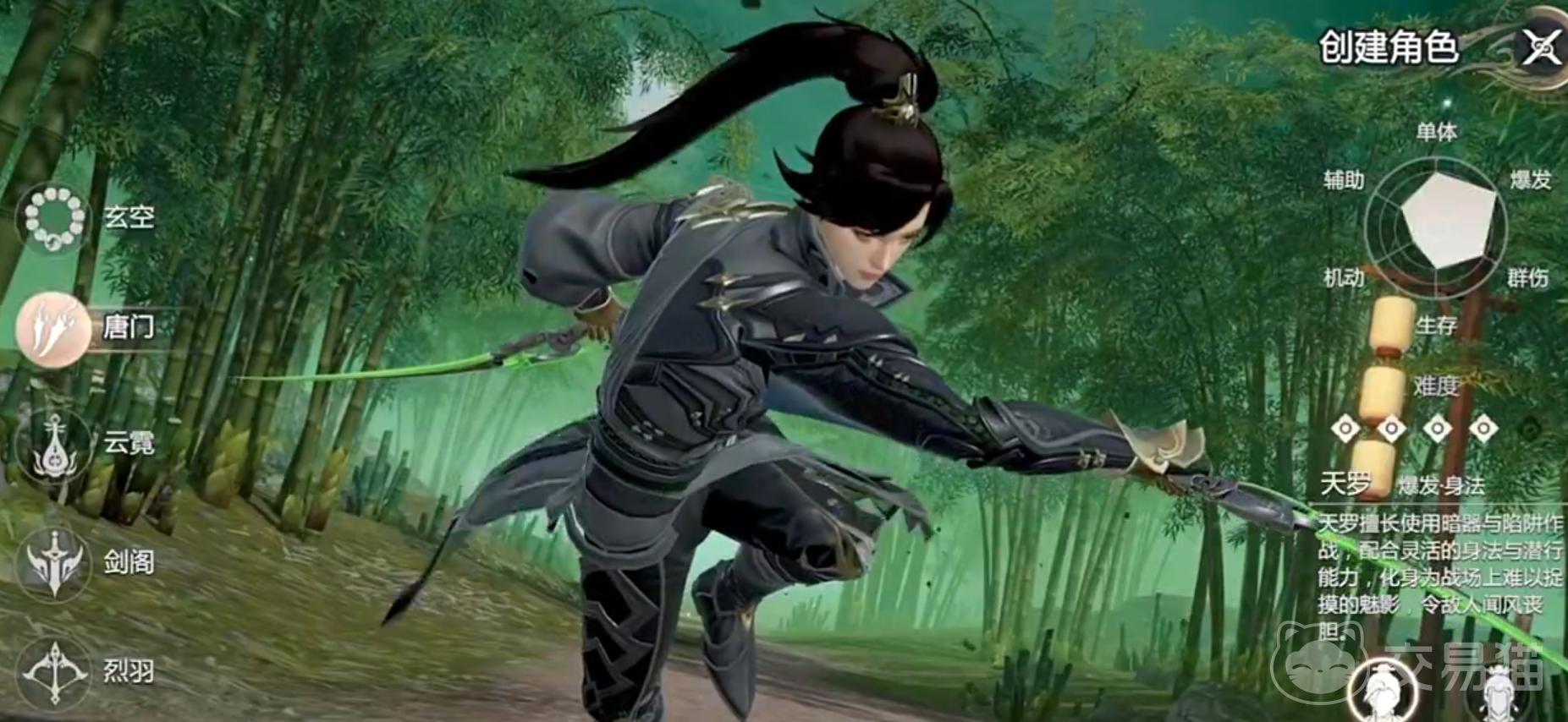 唐门用匕首和暗器当做武器,拥有敏捷的的身法,是战场上行动迅速的刺客,他们拥有近战和远程两种能力,在面对远距离的敌人时,可以发射多枚暗器,近战则会隐身接近发起致命偷袭。
