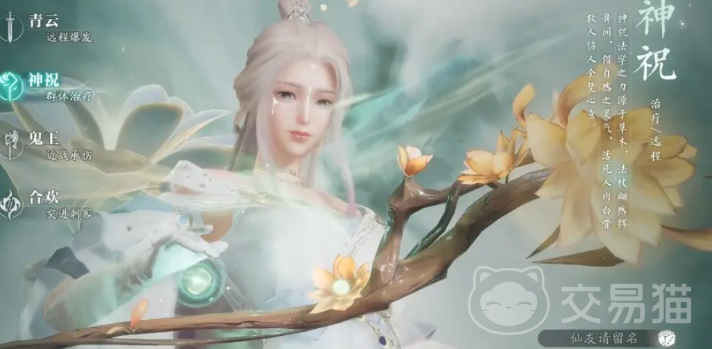 神祝大家可以理解为奶妈,他的“花落四生”能持续治疗目标队友,“蓬莱玉枝”能进行群体治疗,并且还会附带上减伤和强化效果,整体来看是团队最为不可获取的辅助,打团队副本不可缺少,适合喜欢辅助的玩家。