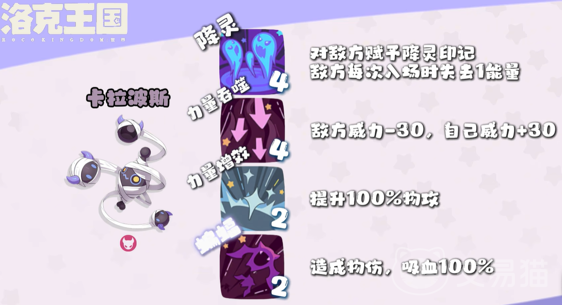 耗能体系其实就是一个消耗能量的体系,在我方要选择一些能消耗对面能量的精灵,这样对面就无法释放出高能量的技能,从而以绝对碾压的形式将对面彻底杀掉,这个体系有一个很重要的技能——降灵。