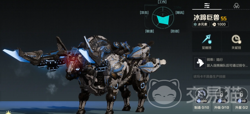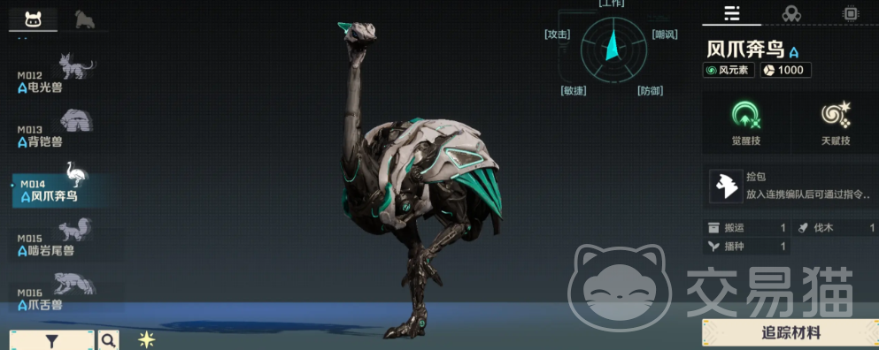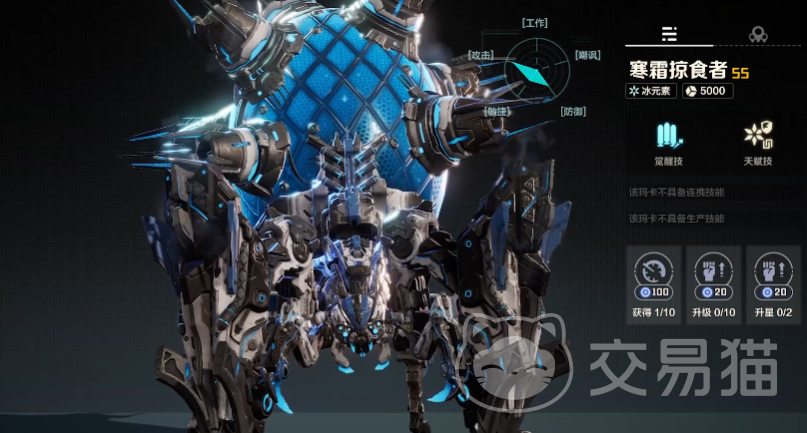从五维度可以很直观的看到每个玛卡的特点,比如寒霜掠食者擅长攻击。玛卡有元素属性,冰克风,风克岩,岩克电,电克火,火克冰这样形成一个闭合。玛卡还有觉醒技能和天赋技能,有的玛卡还有伐木、控火等生产向的技能,或者是一些特殊的连携技能。