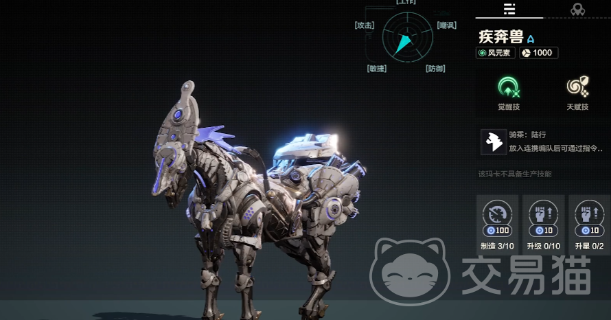风元素的玛卡,敏捷性能强,拥有骑乘连携技能,是可以骑乘的,前期跑图就靠它了。