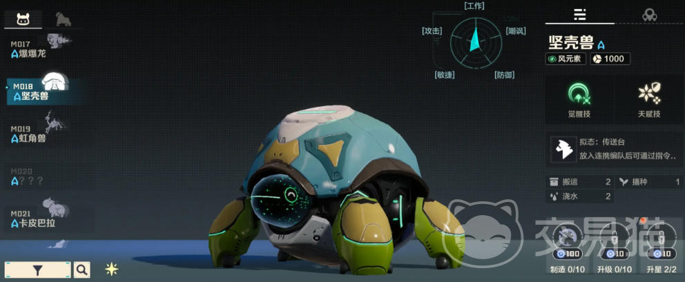 坚壳兽,这只玛卡可以原地制造传送台,很适合新手,建议想想办法拿到一只,这样跑图会方便很多。
