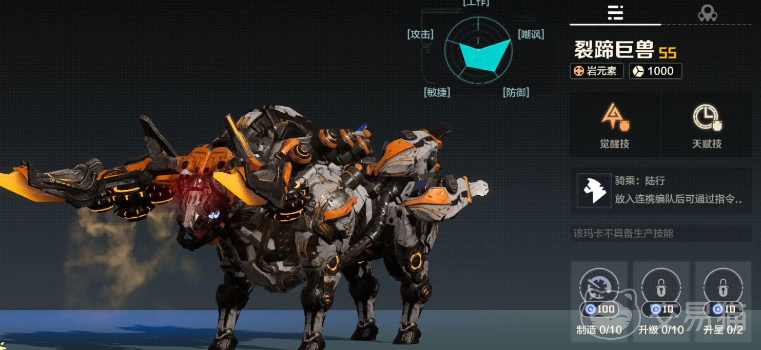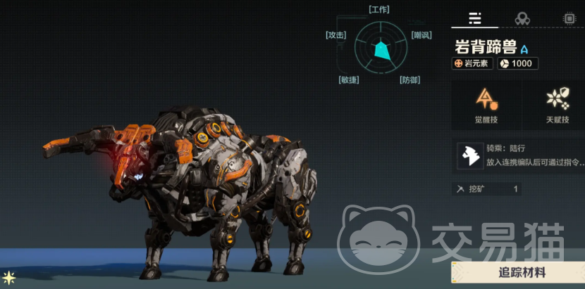 火牛,擅长冲锋的近战玛卡,觉醒技“反重力”可释放数个岩弹,覆盖一整片区域,对范围内的敌人造成2次岩伤。天赋“岩铠”可在受到伤害时获得减伤buff,能叠加10层。此外,火牛还有高级嘲讽能力,每40秒可强制吸引敌人攻击自己。火牛也能骑乘,但需提升至5星后才能解锁这一功能。