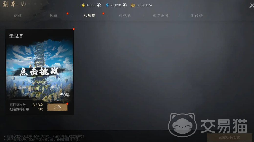想高效推进无限塔,推荐采用“先突破,再扫荡”的策略。每日建议优先挑战更高层级,确保稳步提升至50层,以解锁更丰厚的奖励。由于扫荡次数每日仅补充一次,玩家应在提升等级与能力值后挑战更高楼层,以最大化收益。