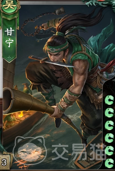 最后一位角色甘宁,这是一位六血角色,拥有在获得黑桃牌以后可以选择一位角色弃掉他一张牌的效果。