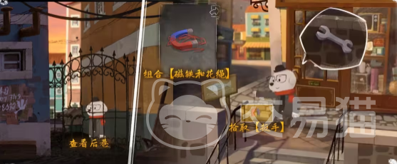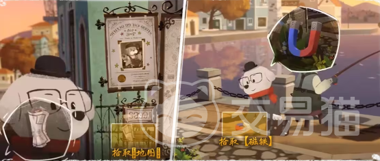 玩家来到柳树街巴士站台这边,可以看到旁边的报刊上面有一个托比克小镇的地图。来到里布街,可以和正在钓鱼的老爷爷对话,在对话之后就能够拾取磁铁。接着进入到贝尼尼面包店,和汪汪对话,可以玩翻花绳的游戏,然后获得花生。进入到杂货店门口有一个下水道,在使用磁铁吊绳之后可以获取扳手。把扳手交给汪汪,请他帮忙修理铁门。