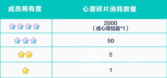 对附带演出服装的四星成员进行专家特训时,除了能提高综合力之外,还能直接解锁这个演出服装的全新颜色,之后还可以在服装商店给其他角色进行制作,至于不同星级的成员消耗的道具数量给大家贴在下图当中。