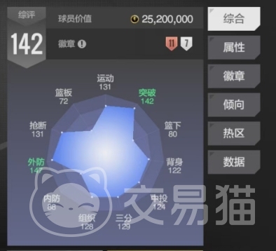 巴特勒的徽章情况是拥有11枚铜徽章和7枚银徽章,这些徽章覆盖的范围极为广泛,其中有专门提升冲击篮下能力的徽章,进一步增强了他在内线的得分效率,在防守方面,他也拥有多个银徽章,这些徽章能够让他更好地完成防守任务,有效地限制对手的进攻。