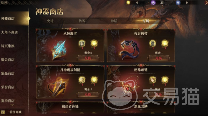 游戏里可以使用的神器非常多,每一个神器都有各自不同的能力,游戏里比较有代表性的专属神器,分别有夜影皮带、永恒凝雪、秘制珠链,还有裁决者项链以及黑血龙鳞,这几个神器,分别属于罗塞尔、芙罗拉、勒瓦尼斯、希维塔尔和席兰多尔,以及纳斯婕卡。