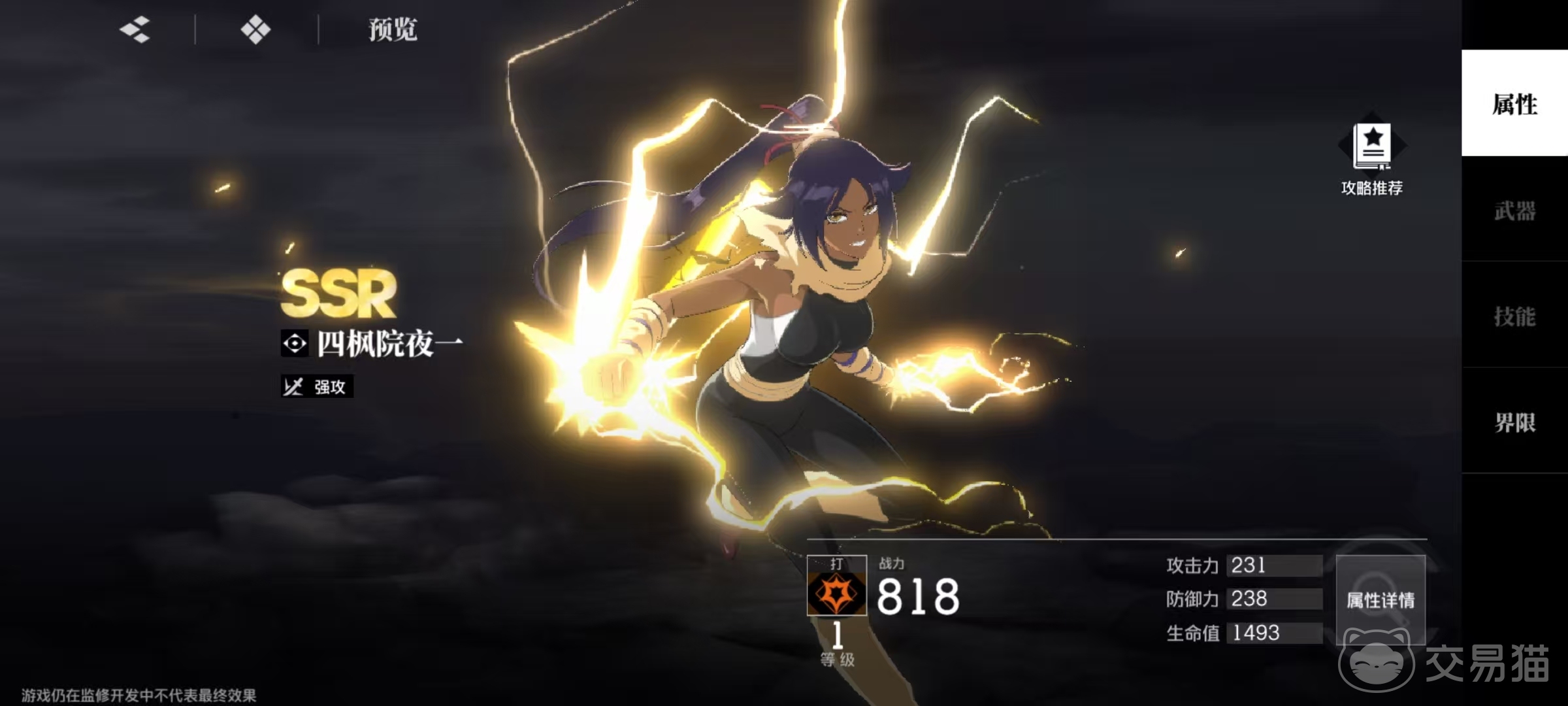 排名第四的是四枫院夜一,这是一名强攻角色,也擅长近距离单体输出,核心能力是闪避反击。只要能保持连击数,就可以获得高额伤害加成,具备在场上持续输出作战的能力,还具有机动性高、生存能力强等优势。当然使用起来也具有一些难度,上手方面需要多练习一些。