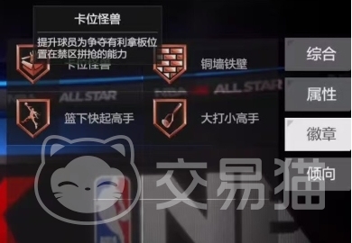 而大打小高手徽章则让他在面对身材相对矮小的对手时更具优势,能够利用自己的身高和力量强吃对手,还有一个徽章,虽然在一定程度上能增强他的防守能力,但鉴于其本身防守属性并非顶尖,所以在实战中的效果相对没有那么好的防守,这个徽章就是比较适合他的铜钱铁壁了,而其他方面想要徽章带来的加成更多就要看大家的操作了。