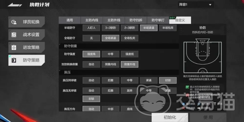 此时内线球员要做好充分的准备,利用自己的身体优势和防守位置感,对进入内线的对手进行强硬的封堵,让他们在内线难以施展拳脚,对于那些没有持球的对手队友,通过积极的移动和干扰,阻止他们获得空位接球的机会,最后开启自动施压功能,让整个防守体系更加紧凑和具有攻击性。