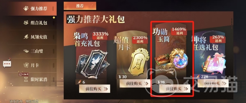 此外游戏中还推出了包含丰富奖励的礼包就是功勋玉简,这个礼包不仅价格合理,而且内容十分丰富,以98元档的功勋玉简为例,里面直接提供了价值980三山壁以及1个珍贵的枭山魂珠,同时还附赠了一些其他的抽卡机会及恢复资源等实用道具。