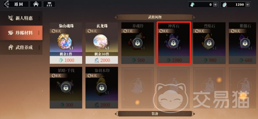 另一个获取途径是在商店珍稀材料中购买,当玩家达到相应的等级并且成功解锁了神霄石之后,就可以在这里花费1980灵犀玉来购买一个神宵石,然而随着游戏的推进,后期还会出现限购次数的限制,所以在这里强烈建议玩家们,一旦在后期解锁了神霄石的购买权限后,一定要把每天允许购买的次数都买满。