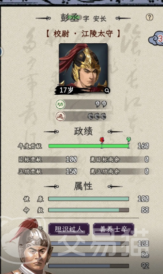 在三国人生模拟想要成为太守有很多种方式,也有多种途径,游戏中每年都会有考核任务,而这便是积累功绩的关键途径,考核结果分为多种情况,其中达到记功标准最为重要,玩家需努力完成各类任务,不同任务的难度和奖励不同,优先选择高星任务能获得更多功绩,随着记功次数的不断累计,官职也会逐步晋升,一般来说大概晋升到3品左右时,在主公势力较大的情况下,玩家有几率被任命为太守,不过这其中也存在一定运气成分,有时即便满足条件,也可能因各种因素无法上任。