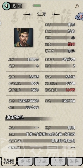 三国人生模拟怎么当太守的内容小编就介绍完了,当上太守后,玩家可以开启大规模招募兵种、刷兵等级等操作,努力提升城市的军事力量,根据城市的资源和发展方向,还需要合理调整兵种比例,如果是平原城市就要多招募骑兵,山地城市则侧重步兵和弓兵,这样可以更好的适应生存。