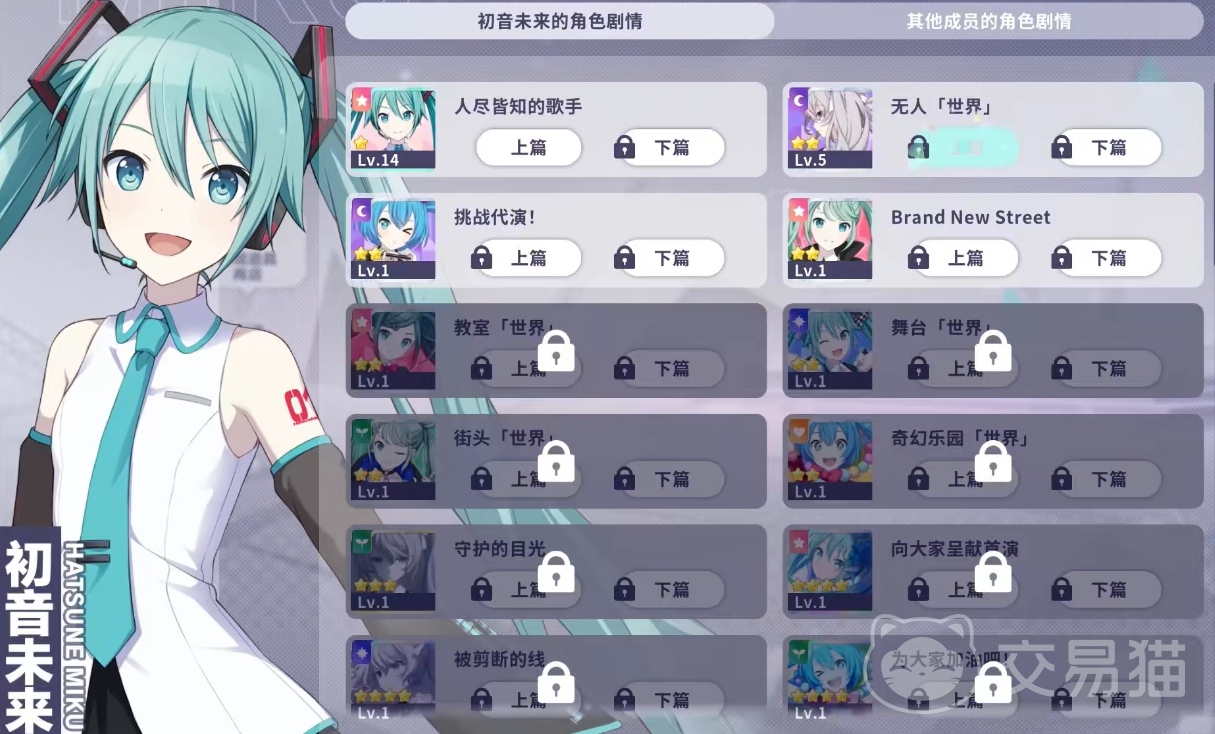 游戏中的角色都能通过主线来完成获取,初音未来自然也不例外,但要注意游戏的设计是每位角色都有一至四星的不同成员卡,玩家们通过主线获得的初音未来只是一星卡,而要详拿到初音未来其它星级的成员卡,玩家们还得通过活动奖励和招募这两种途径。
