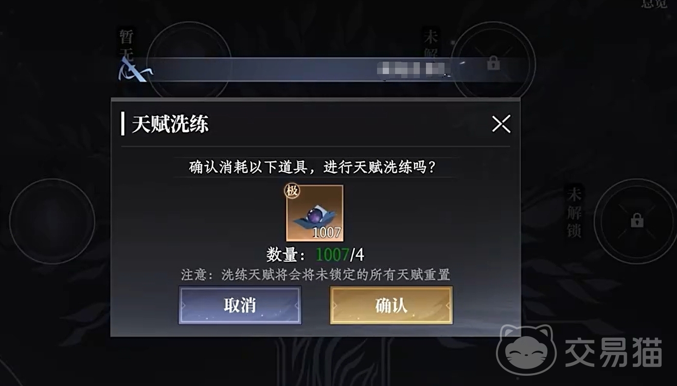 而随机天赋则需要洗练才能解锁,玩家们可在随机天赋界面用洗练丹来完成天赋的洗练。但要注意洗练时所有天赋都会被重新洗练,并不能单独对某一栏位的天赋进行洗练,所以各位若是洗练出了好天赋,还请记得将该天赋栏锁定,避免好天赋被重新洗走。