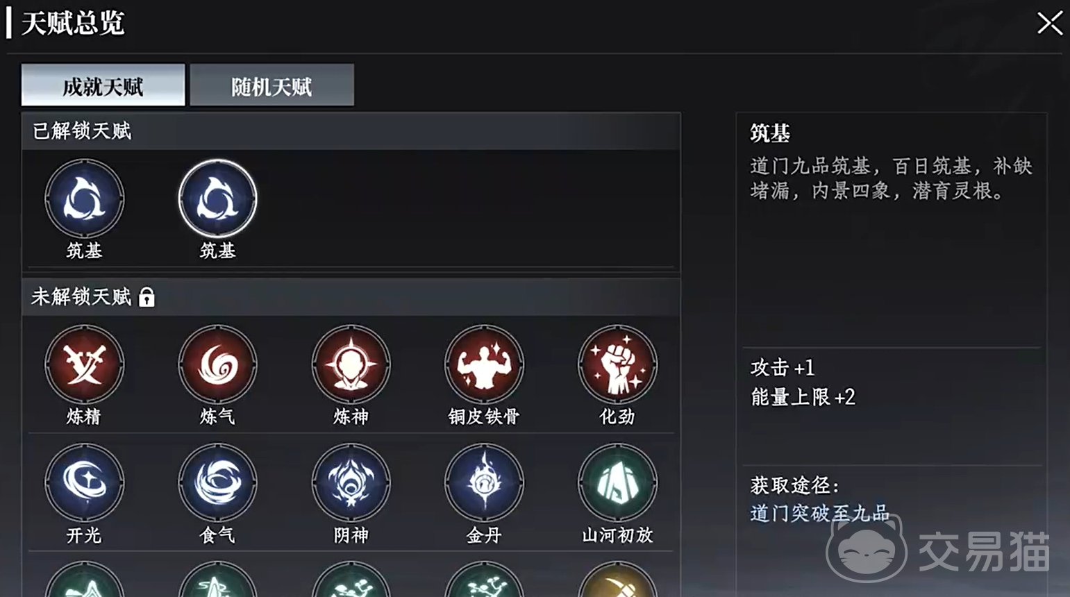 游戏里的天赋功能由成就天赋和随机天赋这两部分构成,当玩家们完成税银案的主线后,就能开启该功能。其中成就天赋主要通过完成游戏内的成就来解锁,并且每一种天赋都有十分详细的获取方法,玩家们若是在里面发现了自己所需要的天赋,可根据它的获取方法来针对性地进行解锁。