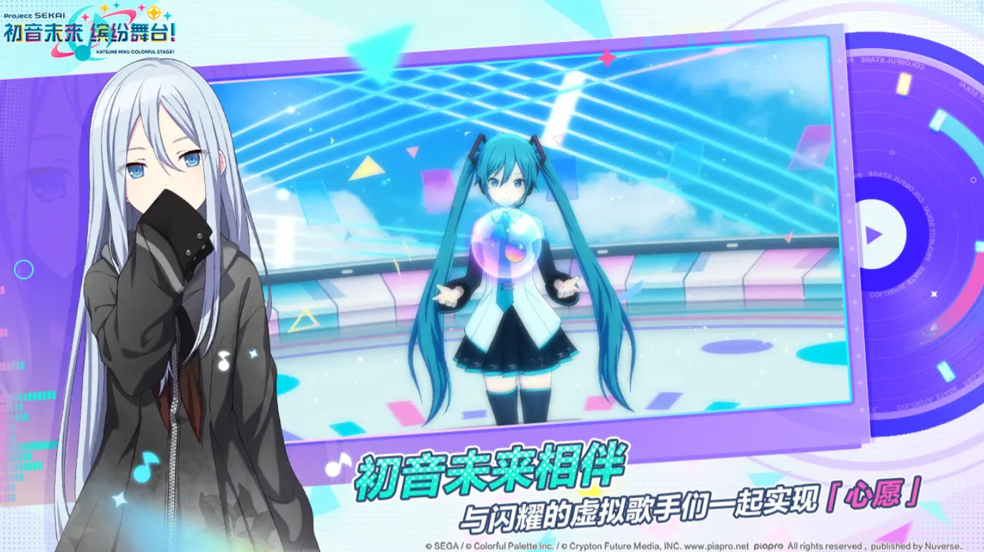 《初音未来缤纷舞台》当前国内的代理商是字节跳动旗下朝夕光年,作为一款以剧情玩法为主的音乐游戏,玩家在游戏当中挑战的并不只是单纯的打歌体验,也有角色的养成体验以及乐队的培养体验。