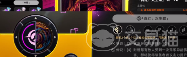 掌机底部还可以看到有一些装备,这些装备就可以根据个人的决策属性去挑选。例如其中有一部分的角色就是咒属性,玩家就可以去挑选对应的属性图片,上面的装备则是由方块拼凑而成。玩家可以把4个完全一样的图片直接放在一起,如此就能够直接触发套装的效果。