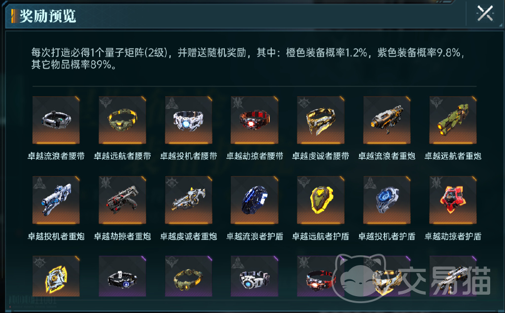 作为一个限时的活动,大家在活动开放的期间,可以利用消耗200点的信用来进行一次的打造,每一位玩家都是有限制的,只能最多进入100次打造,只要精心打造,就会获得二级的量子矩阵,可以帮助大家更好地强化英雄的装备,在后续活动奖励之中,还会随机抽取一种奖励,包括橙色的装备,紫色的装备以及量子矩阵,而橙色装备的概率有1.2%,这次的概率有8.9%,大部分玩家都是抽蓄到量子归真。