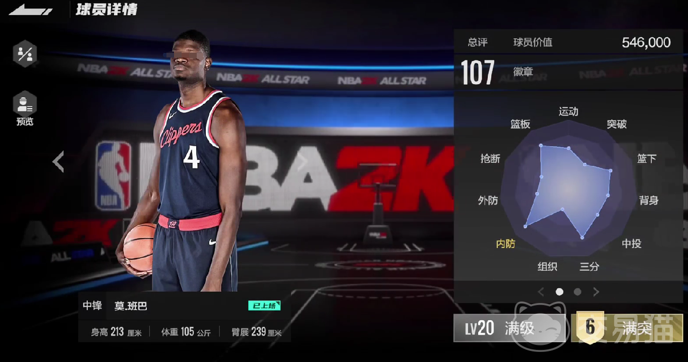 平民玩家在体验游戏的时候,想要选择优质的中锋,那么就直接选择莫班巴,因为他的防守,盖帽水平比较高,只是外线防守是特别弱的。