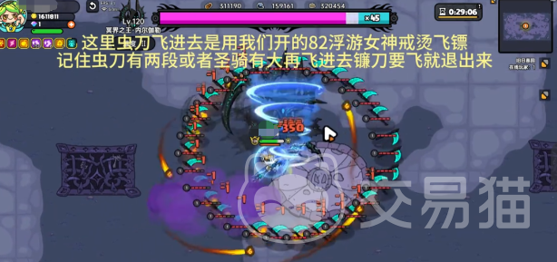 镰刀形态会释放一个全屏激光,并且还会有大量的小镰刀,针对玩家会造成高额的伤害。在这一个形态上,还会在对应的时间内针对boss去展开攻击。