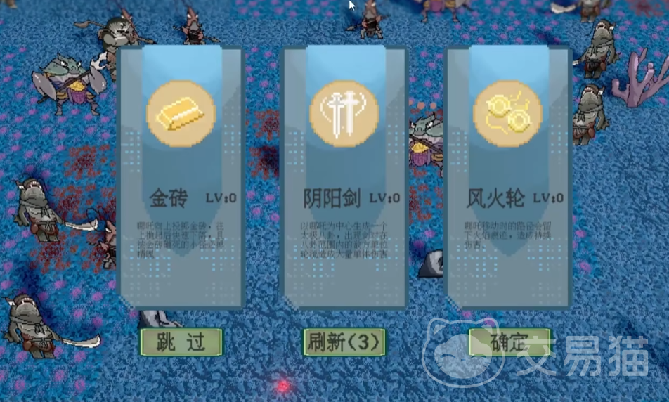 作为一款割草游戏,打怪升级自然是最重要的玩法了。小伙伴们将会在地图中遇到不断刷新的小怪,而除了基础的普通攻击之外,还可以使用各种法宝来击败他们。法宝的种类还是比较多的,并且作用也各不相同,比如说当玩家们使用乾坤箭的时候,将会以自身为中心,向周围发射箭矢,距离越远则数量也会增加,呈现出一个扇形。每次提升等级之后,屏幕上都会跳出新的法宝,可供玩家们选择,或者你也可以选择对手中已有的法宝进行升级。