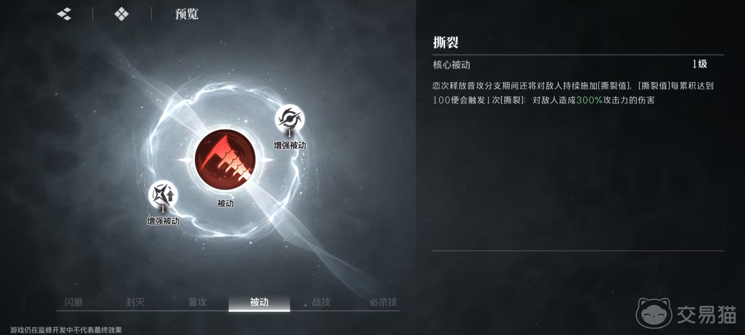 因为是紫色品质,所以只有一个核心被动和两个增强被动。核心被动撕裂,释放普攻分支期间,对敌人施加持续的撕裂值,积累100点撕裂值就可以触发一次撕裂造成伤害。在增强被动的影响下,撕裂造成伤害提升,每次对敌人施加撕裂值速率提升。战记隐匿獠牙,将蛇尾丸刺入土中,刀刃从地底钻出向敌人袭去,造成伤害后将目标朝阿散井恋次方向拖拽。技能命中时会对敌人施加持续十秒的蛇咬状态。