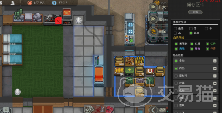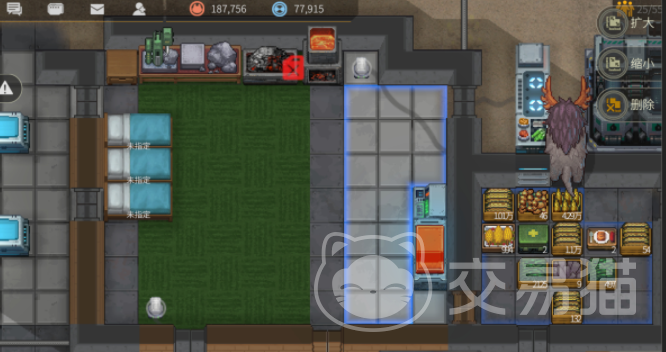 清空房间之后就可以在游戏里打造一个储藏区,这样玩家在加工材料的时候,就能就地取材,节约更多的时间,最后在这里也放置一个冷库,能存放大量的食物。