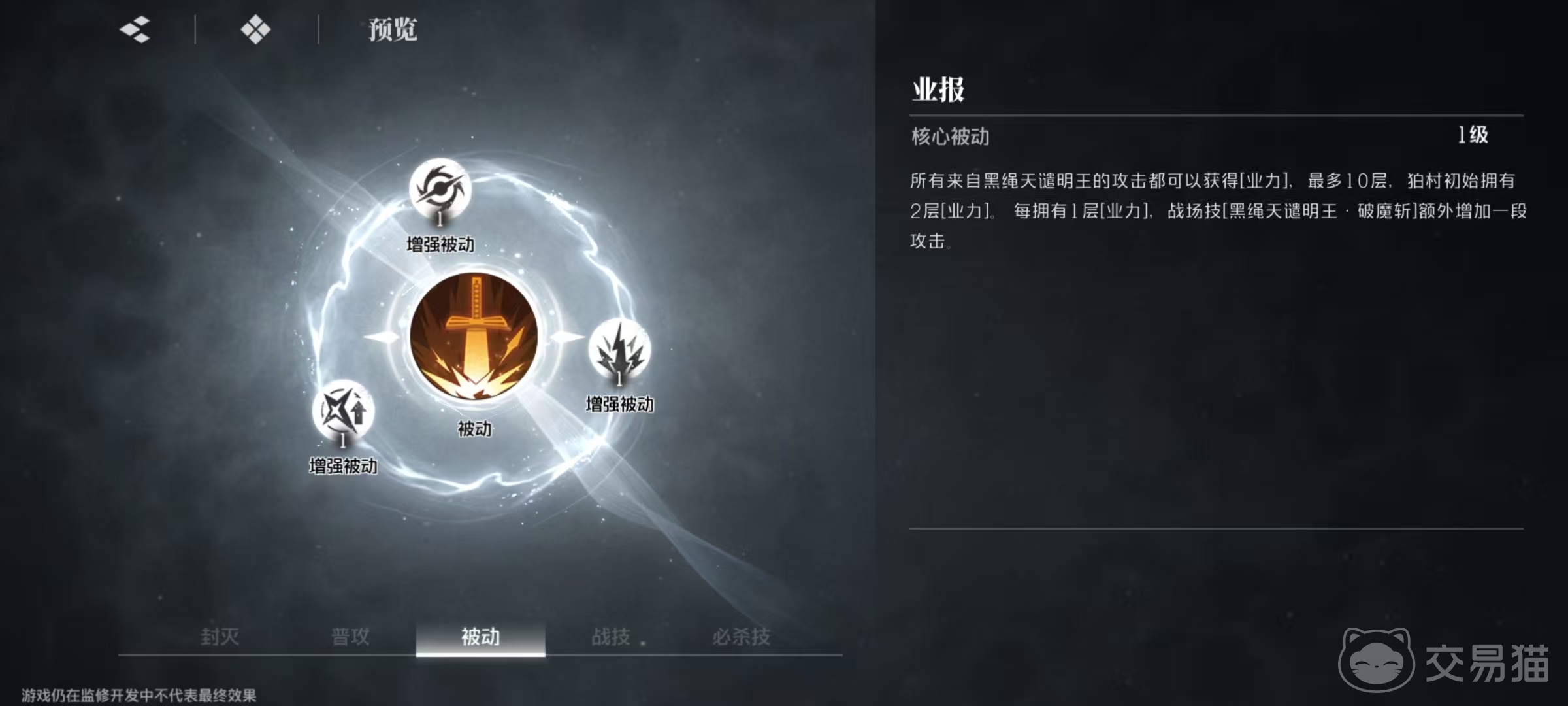 柏村左阵的核心被动业报,所有来自黑绳天谴明王的攻击都可以获得业力,最多叠加十层,最初狛村左阵有两层,每拥有一层,战场技额外增加一段攻击。在增强被动的影响下,狛村左阵护盾生效期间,拥有该护盾的角色暴击率提升,战场技每次造成伤害时都会使目标打系抗性降低,狛村左阵护盾的最大伤害吸收量提升。