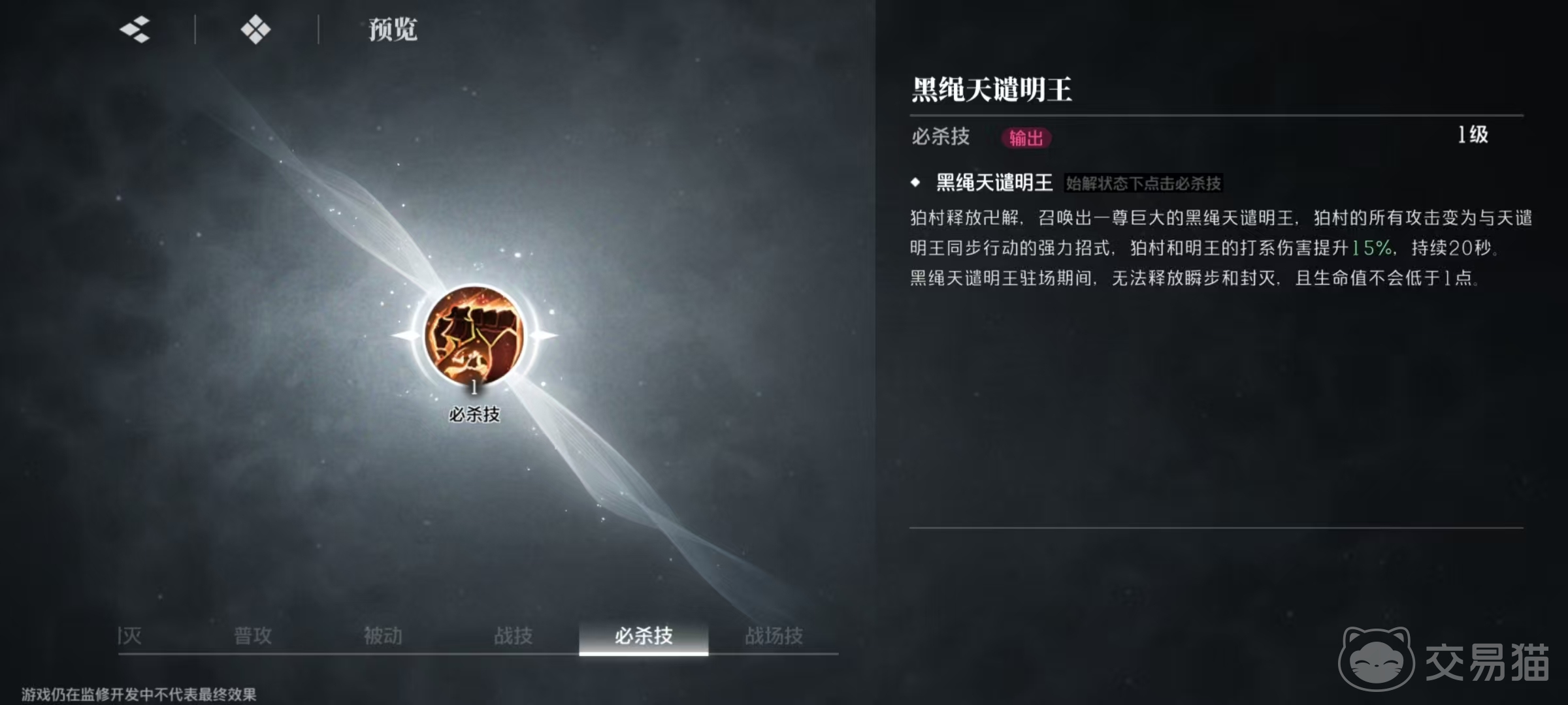 还有一个战场技,当战场技激活时,所有角色打系伤害提升30%。在除自身以外其他角色释放战技或者是普攻最后一段时就可以激活,协同天谴明王挥刀劈砍,对目标造成范围伤害并叠加业力。在始解状态下可以直接点击战场,即切换狛村左阵上场,对目标造成范围伤害并叠加业力。