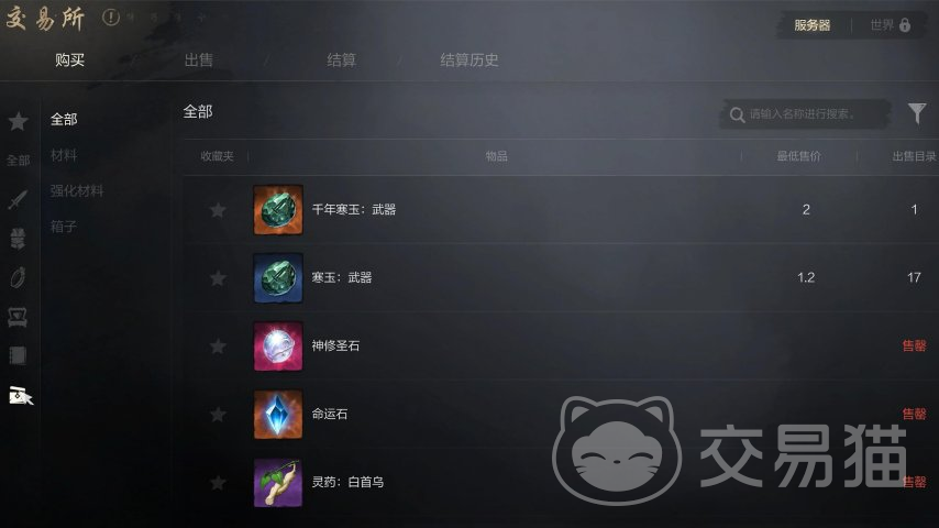 各种材料道具也成为了跨服交易的热门,我们在强化装备和武器时经常会出现材料或者道具不够的情况吧,有些大佬玩家肯定就会直接选择交易购买,那跨服交易就给我们提供了一个能够买到更到资源的平台,让掘金的玩家可以在跨服交易里面很赚一笔,又节省了大佬们的时间。