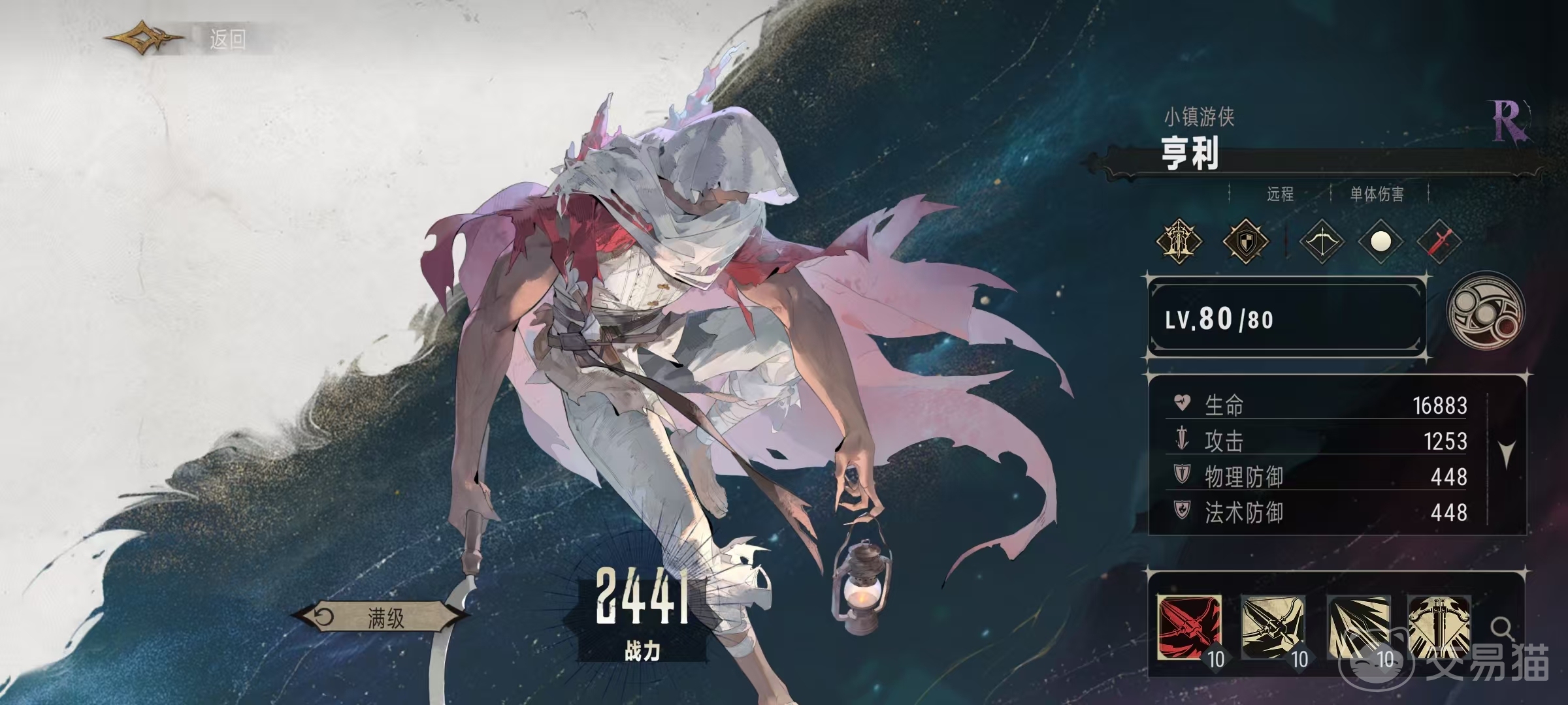亨利的称号是小镇游侠,它是属于王国阵营的中型角色,这是属于远程单体伤害类型,月相是满月。等级只能提升到80级,所以在后续属性方面肯定是有劣势,他通过自身的基本攻击疾射,可以对主目标造成128%攻击力的物理伤害,伤害比例方面还算比较高。战技暗剪上弦,每进行三次普攻就可以主动释放一次技能,对当前目标造成300%攻击力的物理伤害。