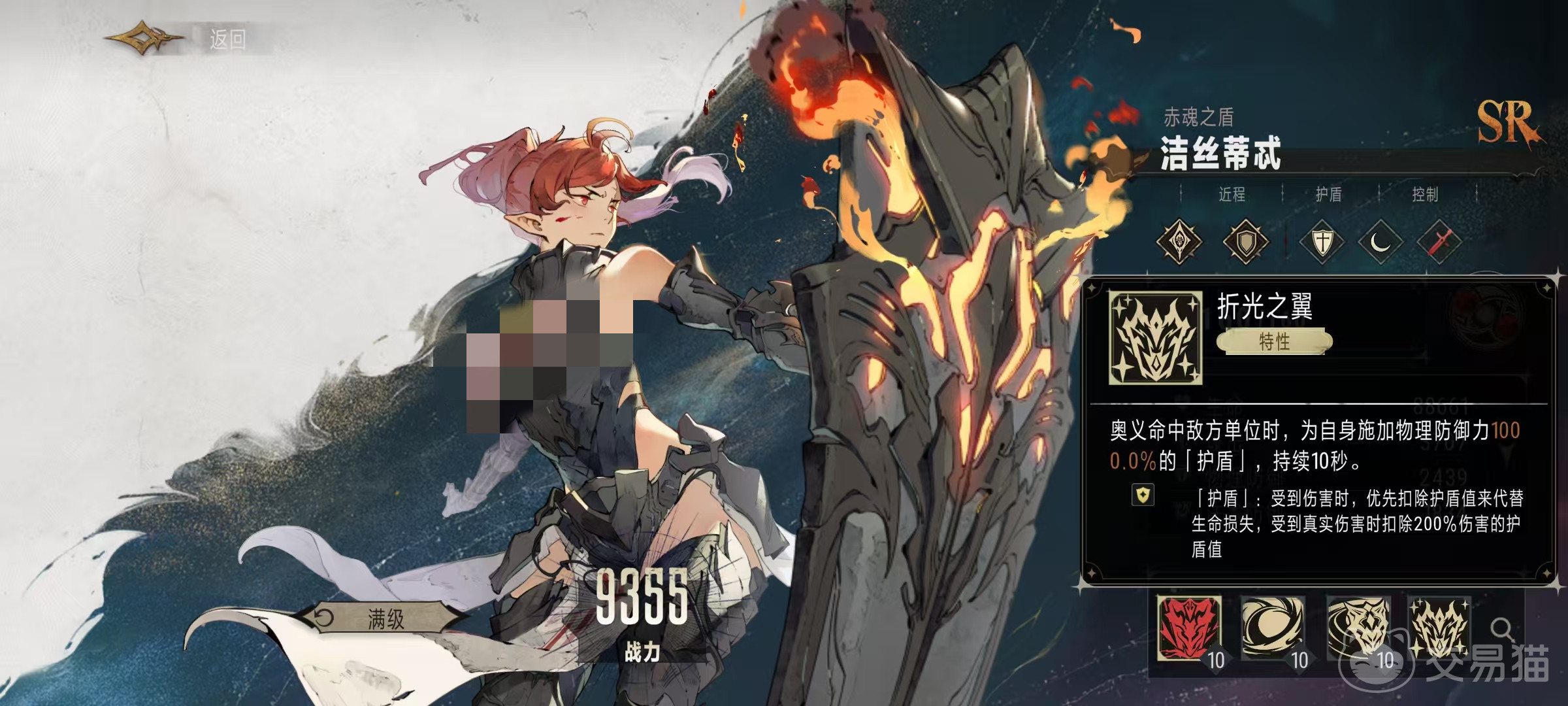 只要带有护盾,受到伤害就会优先扣除护盾值,如果受到的是真实伤害,那么护盾值消耗的会更快一些。该角色还具有一个特性,折光之翼,只要奥义技能命中敌方单位自身都可以再获得一个物理防御力1000%数值的护盾,持续10秒钟,这个护盾更厚一些,所以在奥义技能释放之后,自身的安全就有保障了。最后是奥义技能,向指定方向进行跳跃,然后对以自身为中心,圆形范围内的其他敌方单位造成一次825%攻击力的物理障碍,同时施加嘲讽,嘲讽持续5秒钟。