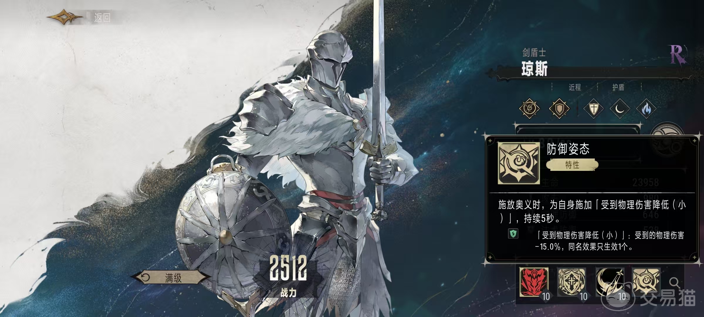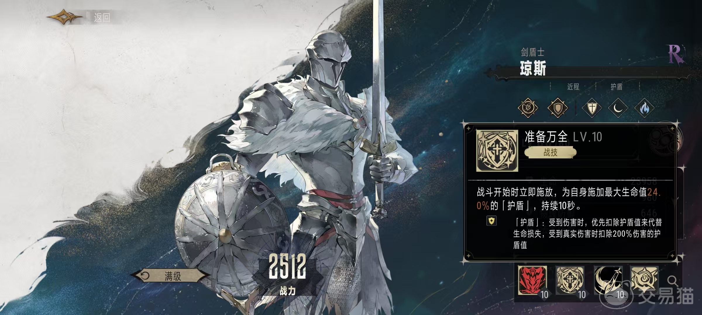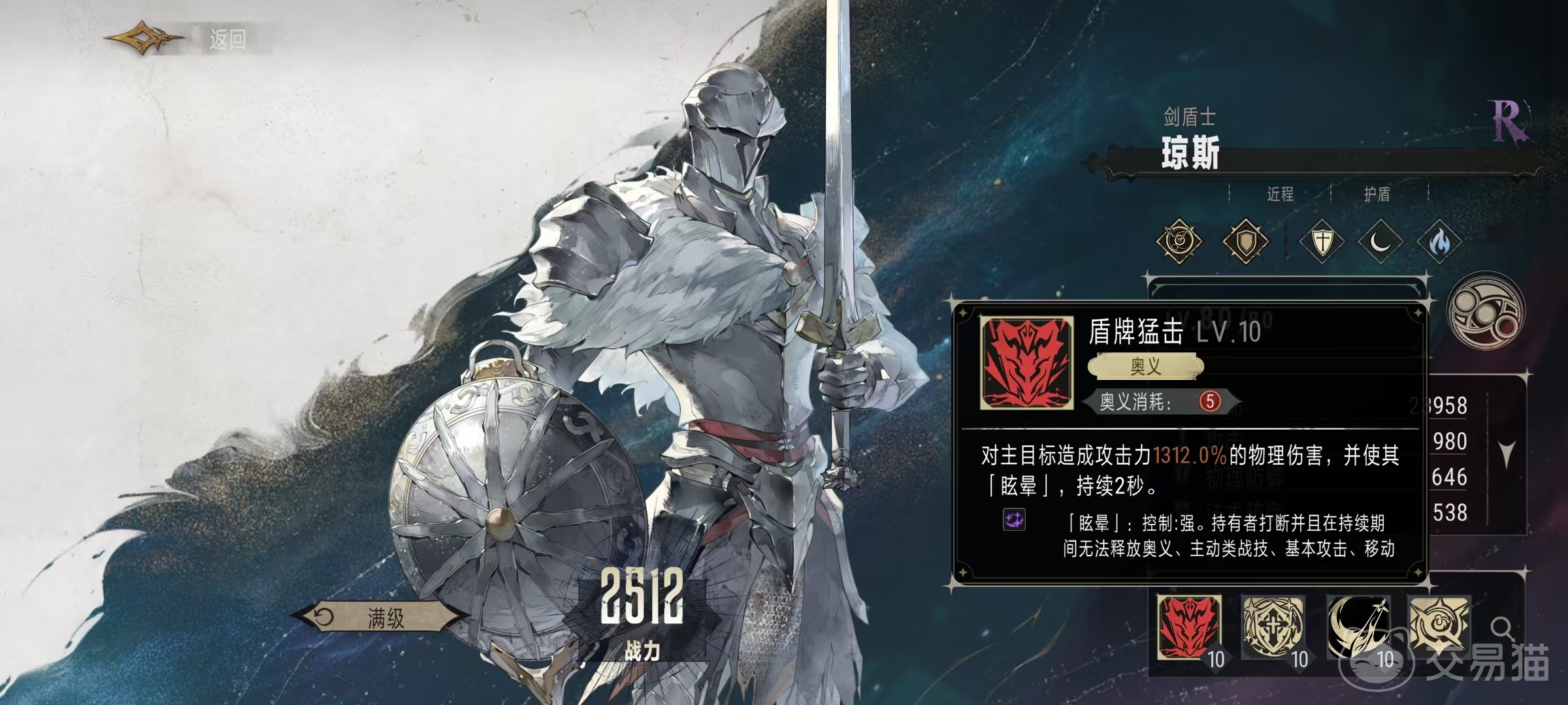 在战斗开始时,可以立即释放自身的战技准备万全,为自身添加一个最大生命值20%。4的护盾,持续10秒钟,这样开局就直接带有护盾也是非常不错的技能,可以多扛很多伤害,这也是他作为二级品质的角色。能够在前期登场成为前排肉盾的原因之一。在受到伤害时会优先扣除护盾值,这样能降低血量消耗。奥义技能盾牌猛击是一个不错的大招,对主目标造成1312%的物理伤害,并使其眩晕两秒钟。这样相当于队伍中又多了一个可以必定。持续两秒的控制技能,无论是用于打断对方的持续施法还是控制核心主c都非常关键。