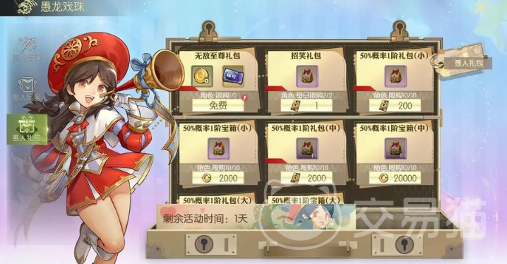 活动安排是从3月30日9:00开始,截止4月2日9:00。今年的愚人节给大家准备了大礼包,可以免费领取限定称号“愚你同乐”,并且有50%概率礼包上架,开箱体体验大提升,只要200龙券就能开。