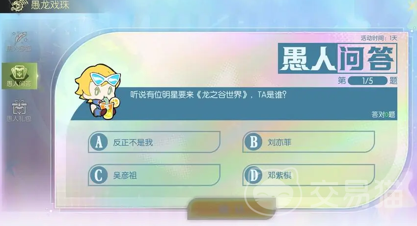 此外,活动期间只要每日登录,就能直接领取50%概率1阶礼包。然后每天参与“愚人问答”,完成5道趣味问答不管是答对了还是答错了,都可以获得随机奖励。有的问题的答案会出乎意料,有点脑筋急转弯的感觉。