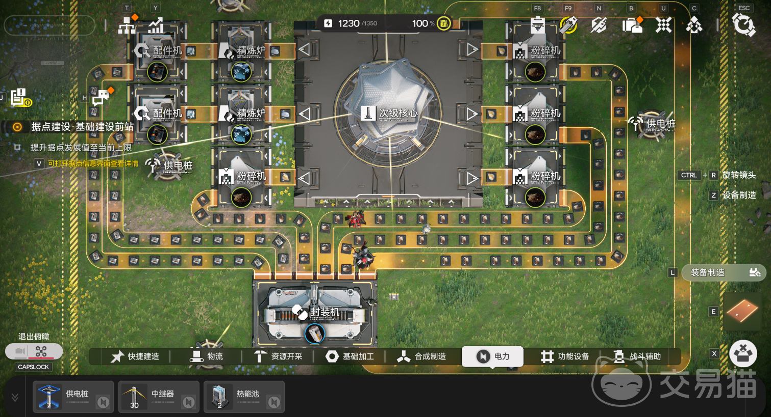 如果我们想要用上传送带的话,那肯定需要建立一个城工业的枢纽地。然后作为核心之后再用传送带将其他的工业设施串联起来,它的核心玩法便是生产各种你所需要的据点物资。然后再将这些物资源源不断的放入包裹里面,以后就能够拿出来用了。