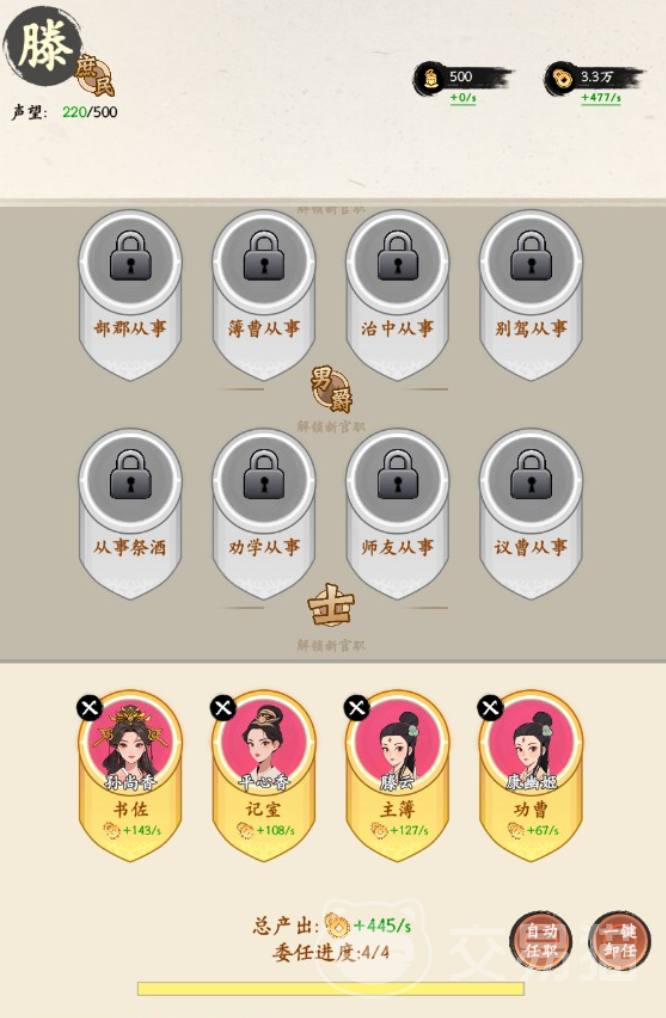 在经营自己城池的时候,需要合理地将资源分配给武将和文将,这样才能保证资源合理化的运转,避免出现两方势力不平衡导致国家的失败,在探索世界中,可以去寻找一些奇遇,这些奇遇除了能赠送属性点以外,还可以遇到一些特殊的武将,提升国家的战斗能力哦。
