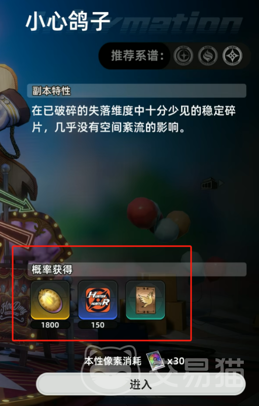 当我们前期做完一些探索都市异能的任务之后,就可以解锁新的副本了。这个副本就叫做小心鸽子,有一个前期的副本对于还是新手的我们肯定有一定的难度。不过他没有什么系谱上的要求,所以对我们来说就可以随便上阵一些角色,没有什么局限性。