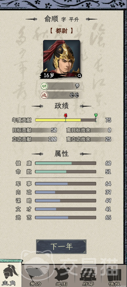 游戏开始时,玩家首先需要选择身份,每个身份都有独特的成长路径和发展方向。如果选择成为一方诸侯,需要经营城池、发展势力、招揽贤才,并通过战斗、外交等手段扩大版图;而若是扮演谋士,则需要在朝堂之上运筹帷幄,为主公出谋划策,甚至有机会逆袭成为真正的权力掌控者。此外,游戏还提供了百姓身份,玩家可以体验民间疾苦,通过科举、投身军旅或经商等方式逐步改变自己的命运。这种多元化的身份设定,使得每一次游戏都充满新鲜感,玩家可以探索不同人生轨迹,感受截然不同的三国世界。