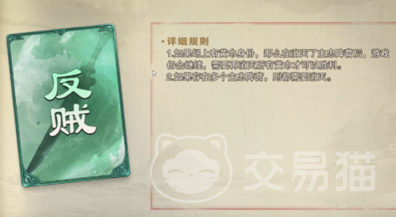 这时候黄巾以及黄忠同心协力的话,就可以顺利击杀这个后面出现的新主公。如此反贼的阵营就会宣告失败,要是对方最后只剩下两个存活人员的话,若是其中一名阵亡之后,另外一名将会获得嚣张跋扈的特殊效,可以表现为获得额外一次卡牌的能力。