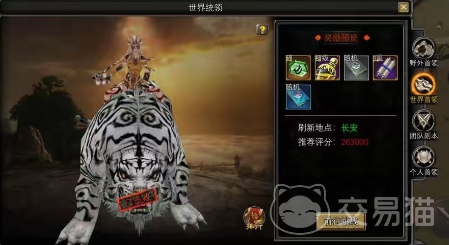 在游戏背景故事中,是一只被大将军孙玄所杀的老虎,灵魂进入到了一个少女身躯里,这样就变成了妖怪。每到十五月圆之夜,就会骑着巨型白虎出现在虎穴山,寻找大将军孙玄,玩家这时就可以前往去进行战斗,击杀之后获得丰厚的奖励。该boss身穿华丽战袍,手持长剑,骑乘巨型白虎,战斗力非常高。