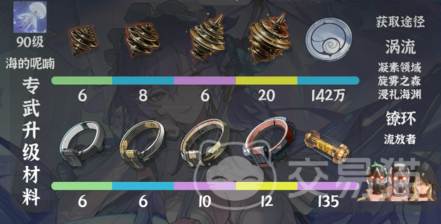 不过,材料准备可不仅仅是角色升级这一块。如果你打算抽取坎特蕾拉的专属武器,那可得再加上一笔准备。专武材料的需求略高,你需要准备特级能源核心、金涡流、紫涡流、蓝涡流、绿涡流。除此之外,金环、紫环、蓝环、绿环同样是专武提升必备的材料,最后,还得准备142万贝币。