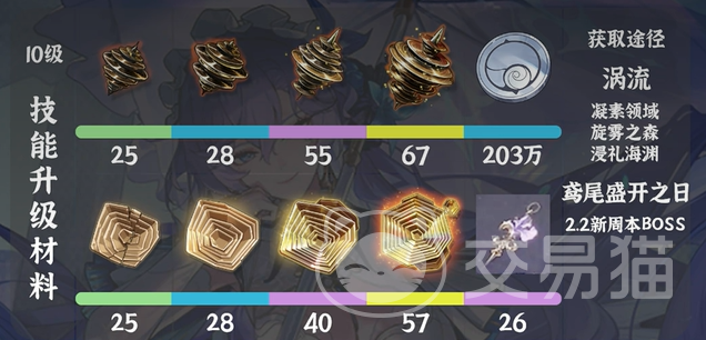 当然,除了突破材料,坎特蕾拉的技能升级材料也得一并考虑。为了让她的技能在实战中发挥最大效能,金涡流、紫涡流、蓝涡流、绿涡流,这四种涡流类材料你需要准备得足够充足。再加上金声核、紫声核、蓝声核、绿声核,都是提升技能的基础材料。此外,鸢尾盛开之日和203万贝币也是必不可少的。