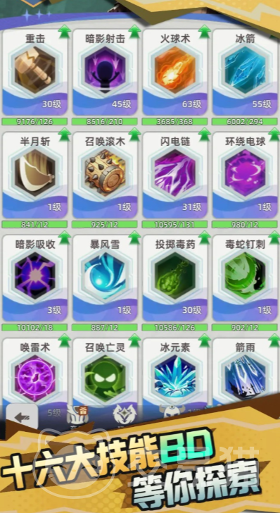 在游戏之中,玩家将化身成为勇士,需要开疆扩土,不断的占领城池,并且在占领城池的过程当中,解锁十六大技能,游戏内的技能搭配完全随机,玩家可以根据自己的喜好,来组建自己称手的套路。